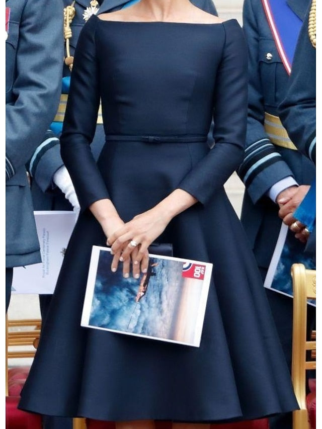 A-Line Mother of the Bride Dress Elegant Simple Jewel Neck Tea