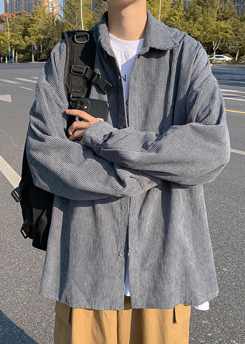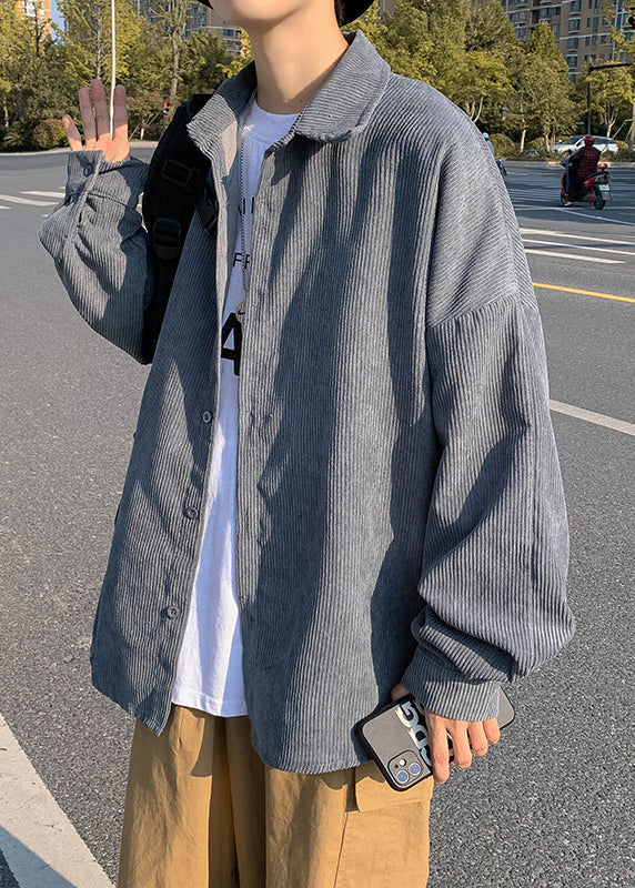 Einfache Blau Peter Pan Kragen Taste Cord Herren Hemden Mantel Frühling