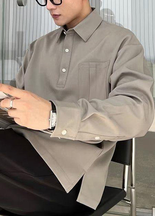 Einzigartige graue Taschen Patchwork Baumwolle Herren Poloshirts Herbst EQ016