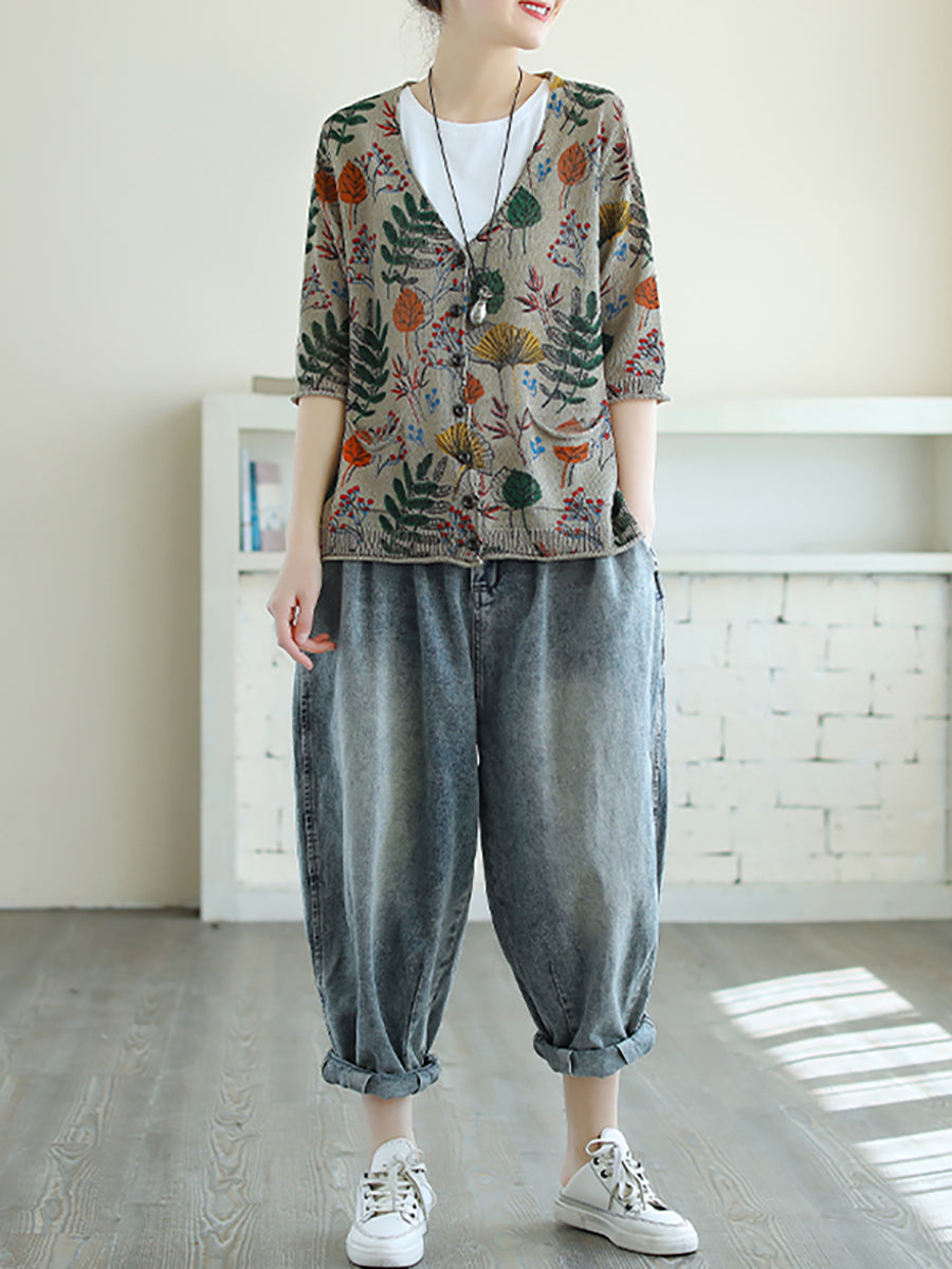 Werten Sie Ihren Stil mit unserem bedruckten Strickhemd für Damen in Übergröße mit halblangen Ärmeln auf. Diese offene Strickjacke weist komplizierte Muster auf und bietet sowohl Komfort als auch Vielseitigkeit. Tragen Sie sie als Statement-Stück oder kombinieren Sie sie mit Ihren Lieblingsbasics für einen eleganten, hochwertigen Look.