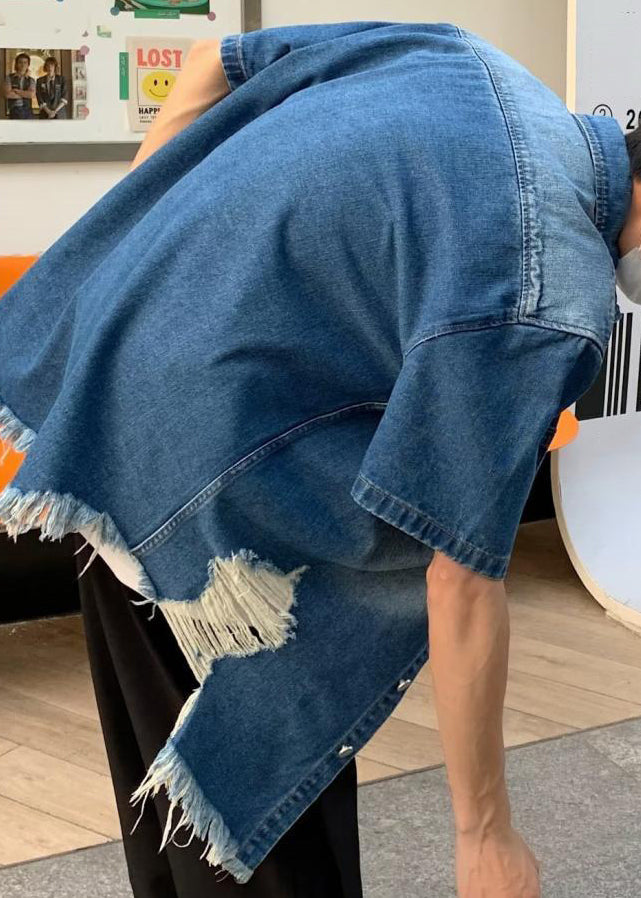 Vintage Blau Loch Taste Denim herren Shirts Sommer