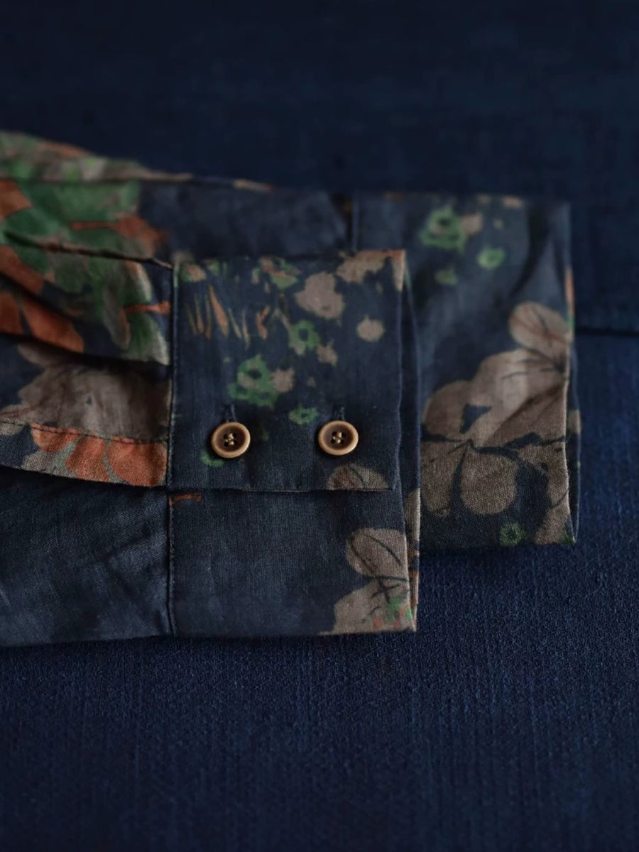 Damen Artsy Sommer Blumenkragen Umlegehemd 100% Ramie