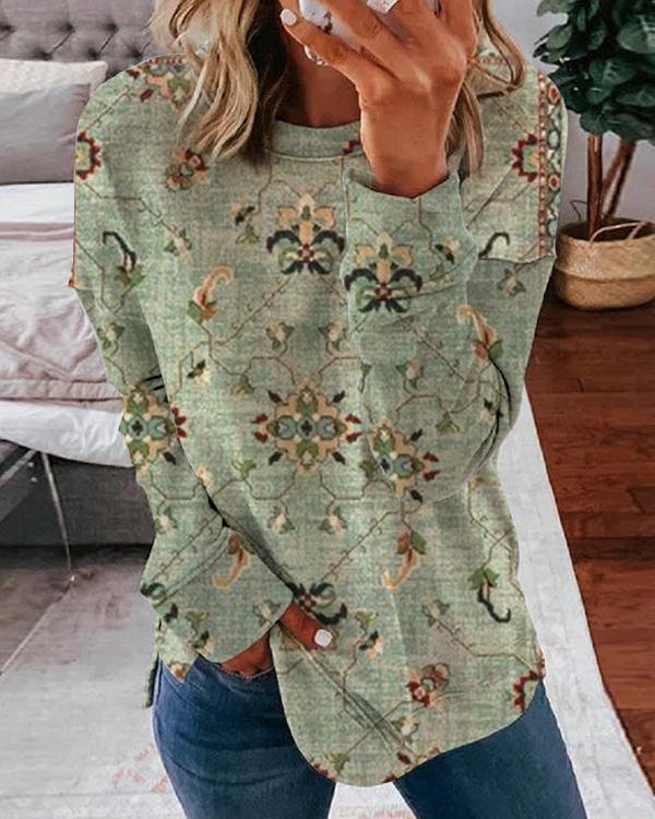 Produkttitel: Lockeres, lässiges Sweatshirt mit Rundhalsausschnitt und Blumenmuster