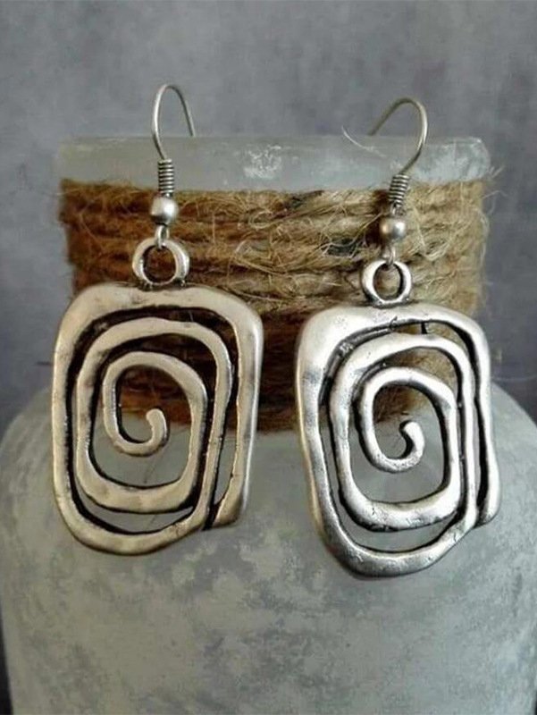 Ethno-Stil Linienmuster Distressed Dangle Ohrringe Vintage-Schmuck AD1019