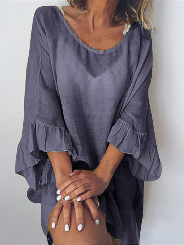 Women's Blue Yellow Purple Summer Spring Mini Dress Faux