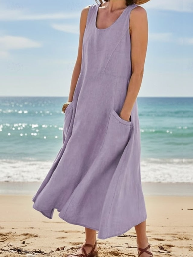 Dresses Type: Sundress, A Line Dress, Fabric: Polyester, Gender: Women's, Design: Pocket, Occasion: Beach, Going out, Style: Vacation, Casual, Print Type: non-printing, Fit Type: Loose Fit, Dress Length Type: Maxi Dress, Neckline: Crewneck, Sleeve Length: Sleeveless, Elasticity: Inelastic, Look After Me: Machine wash, Pattern: Solid Color, Graphic, Season: Summer, Spring,