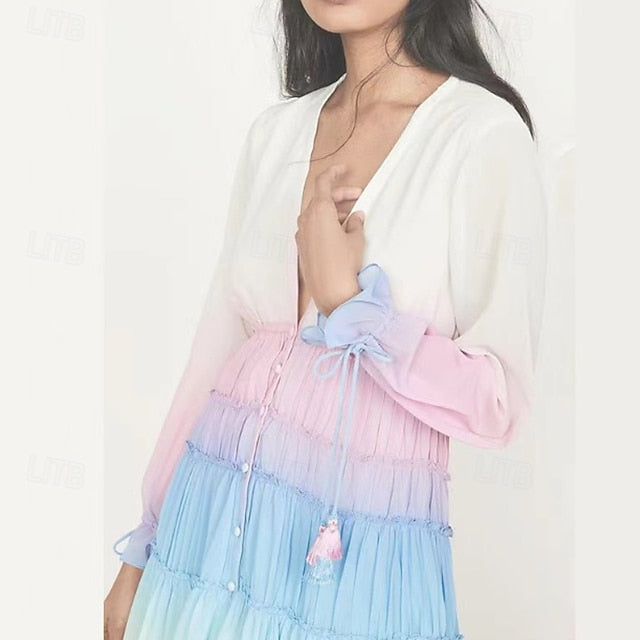Dresses Type: Floral Dress, Fabric: Polyester, Gender: Women's, Design: Plus High Low, Ruched, Occasion: Daily, Going out, Weekend, Style: Fashion, Modern, Fit Type: Regular Fit, Dress Length Type: Midi Dress, Neckline: V Neck, Sleeve Length: Long Sleeve, Elasticity: Micro-elastic, Look After Me: Machine wash, Pattern: Ombre, Season: Summer,