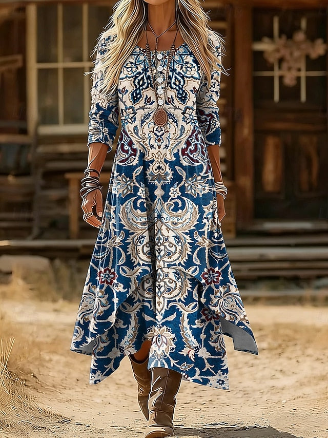 Dresses Type: Shift Dress, Fabric: Polyester, Gender: Women's, Design: Layered, Occasion: Daily, Holiday, Style: Casual, Fit Type: Regular Fit, Dress Length Type: Midi Dress, Neckline: Crew Neck, Sleeve Length: Long Sleeve, Elasticity: Inelastic, Look After Me: Hand wash, Dry clean only, Machine wash, Pattern: Graphic, Geometric, Season: Fall, Winter,