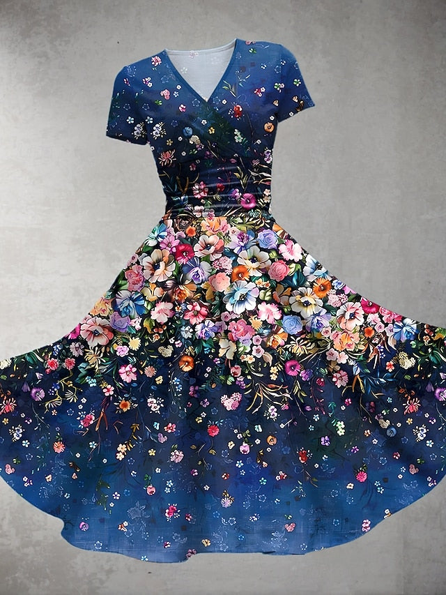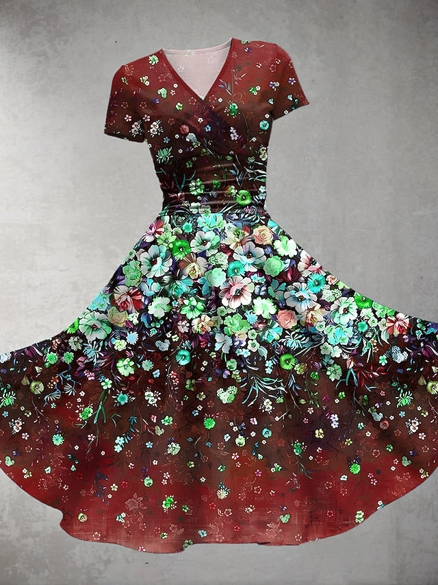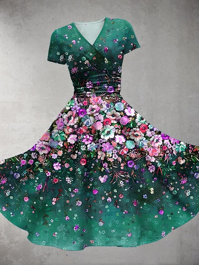 Dresses Type: Fit And Flare Dress, Summer Dress, Fabric: Polyester, Gender: Women's, Occasion: Daily, Holiday, Design: Ruched, Style: Party, Casual, Fit Type: Regular Fit, Dress Length Type: Midi Dress, Neckline: V Neck, Sleeve Length: Short Sleeve, Elasticity: Stretchy, Look After Me: Hand wash, Dry clean only, Machine wash, Pattern: Graphic, Floral, Season: Summer,