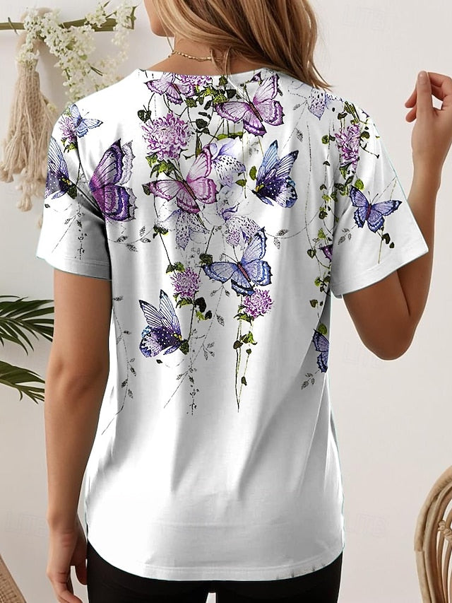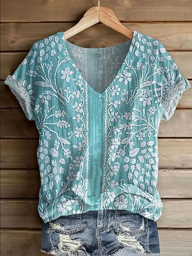 Tops Type: T Shirt, Fabric: Polyester, Gender: Women's, Occasion: Vacation Wear, Daily, Going out, Weekend, Design: Print, Style: Classic, Stylish, Vintage, Casual, Trendy, Fashion, Modern, Hawaiian, Category: T-Shirt, Fit Type: Form Fit, Neckline: V Neck, Sleeve Length: Short Sleeve, Elasticity: Micro-elastic, Look After Me: Machine wash, Top Length: Regular Tops, Pattern: Graphic, Plants, Floral, Season: Summer, Spring,