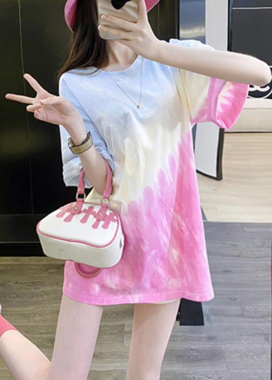 Summer Cotton Shirts Color Tie T Dye Chic Gradient Neck O