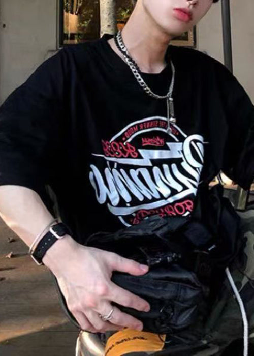 Summer Mens Embroideried Black T O-Neck Stylish Shirt