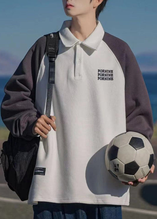 Sweat-shirt polaire chaud gris foncé à col Peter Pan pour homme, motif patchwork, automne EQ006