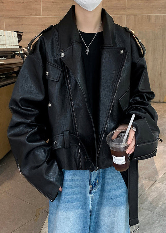 Manteau en similicuir pour homme, design original, motif clous café, printemps RN026