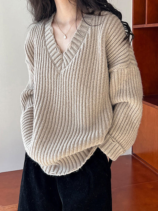 Pull en tricot à manches longues et col en V Urban Fuchsia AN1046