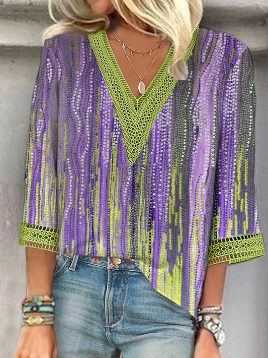 Chemise décontractée en dentelle ombrée à col en V mm265