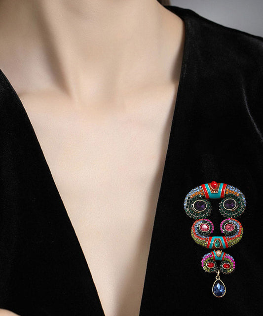 Broche vintage en argent sterling avec cornes en cristal de zircon surdoré arc-en-ciel YA018