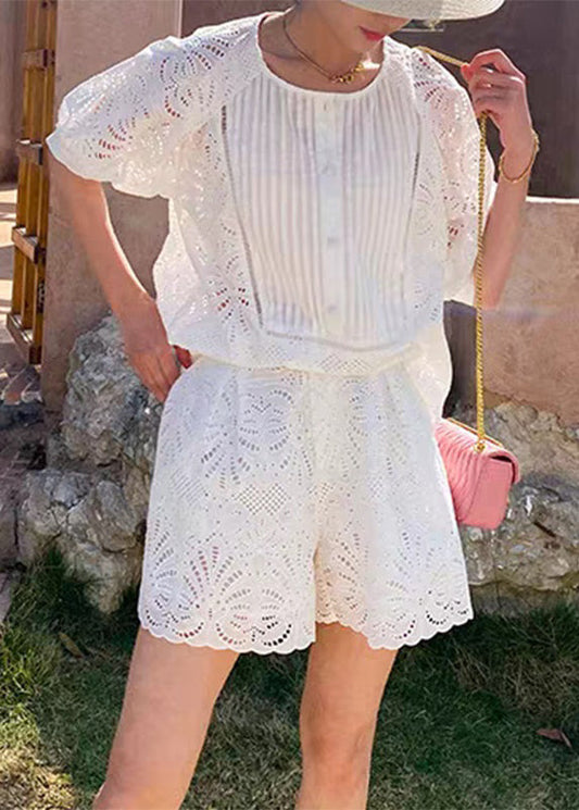 Ensemble deux pièces chemise blanche à manches courtes et col rond