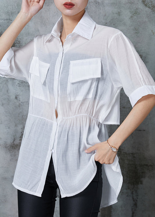 Chemises blanches en coton à coupe ajustée et à deux pièces cintrées pour l'été AL1022