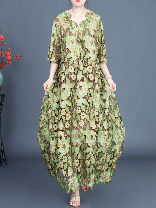 Robe longue d'été à double épaisseur en dentelle florale pour femme KL1051