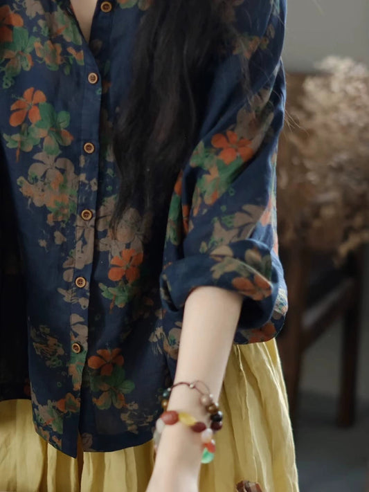 Chemisier Ramie à imprimé floral artistique pour femme KL1041