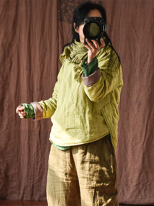 Gilet ample patchwork vintage 100 % lin pour femme, automne AH1029