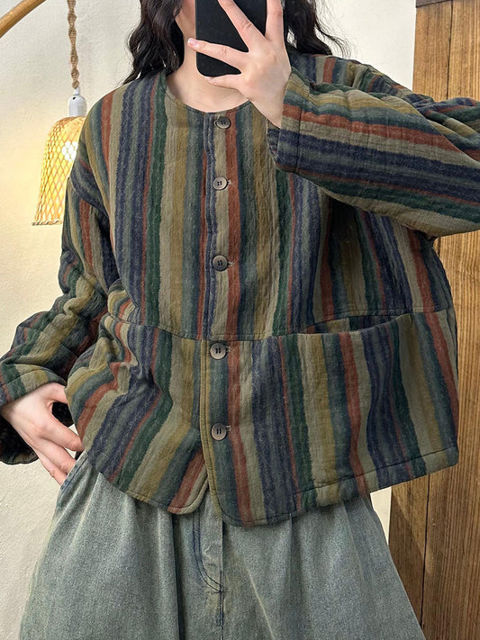Manteau en coton à col montant et motif feuilles artistiques pour femme AS1008