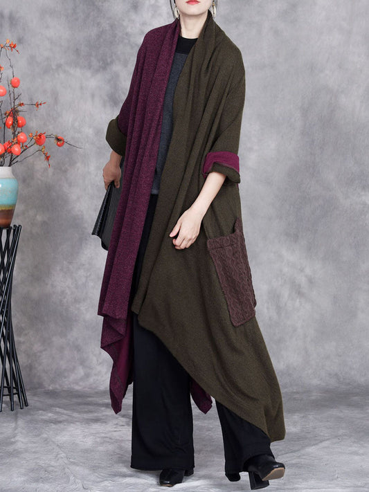 Manteau cardigan à col en V irrégulier et à blocs de couleurs pour femmes, automne, BA1057