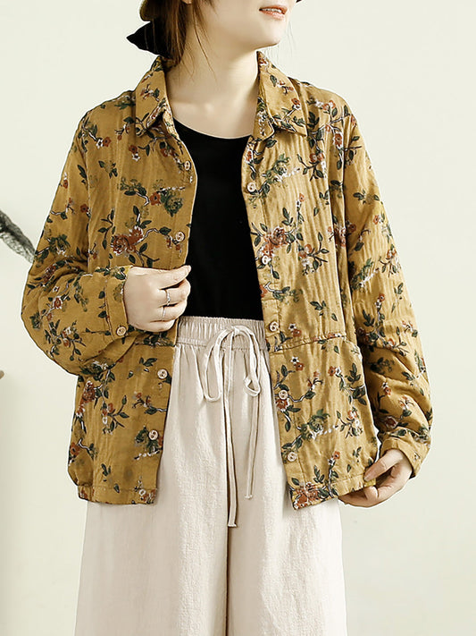 Manteau chemise en coton à fleurs artistiques d'automne pour femmes AK1038
