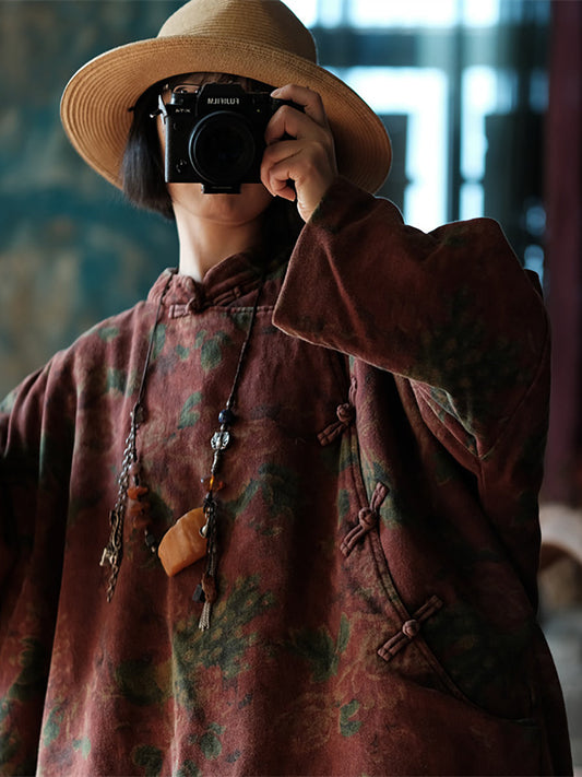Manteau ample à fleurs ethniques pour femmes, 100 % coton, AT1050