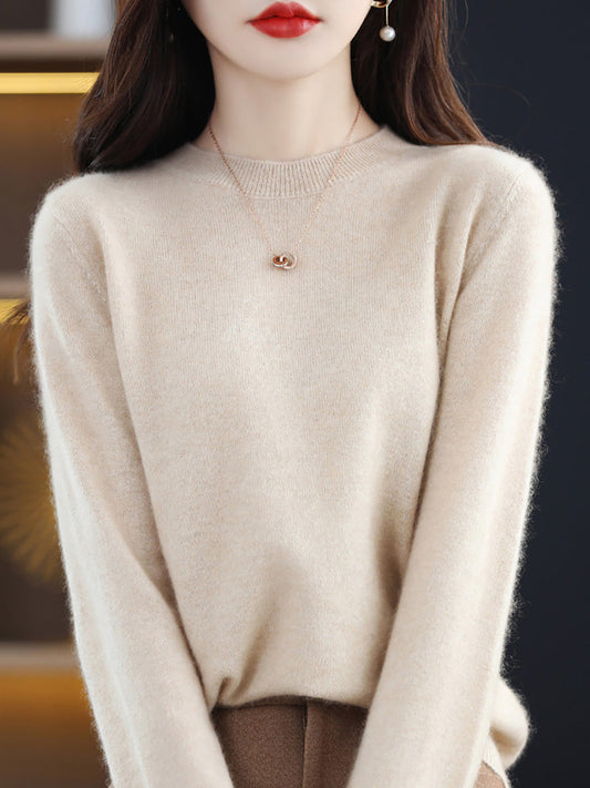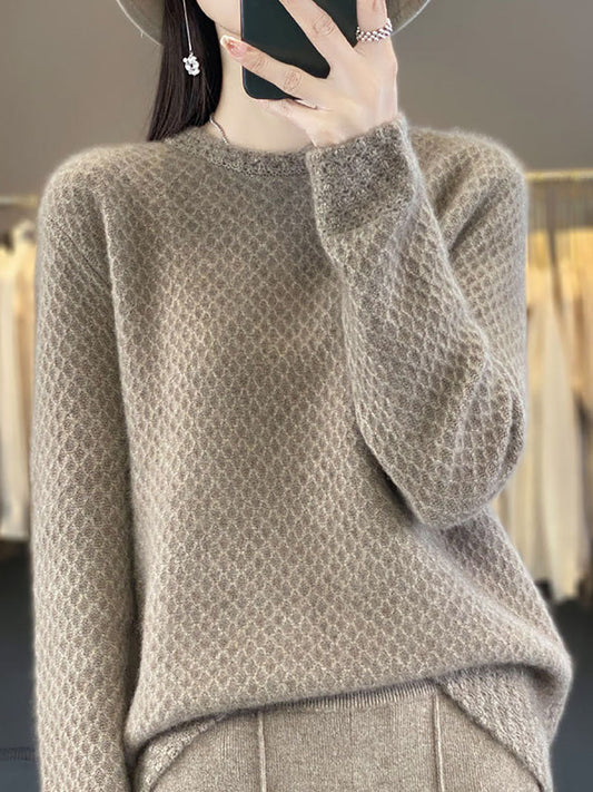 Pull col rond en tricot uni 100 % laine pour femme QM019