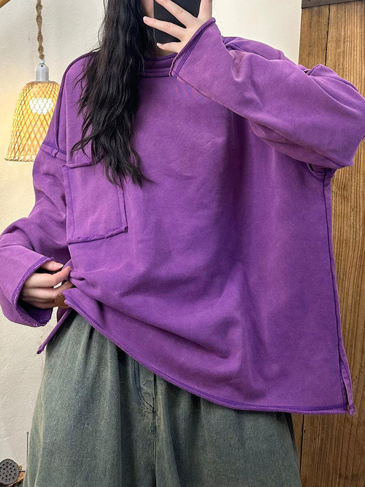 Sweat-shirt à col montant uni pour femme, automne AH1059