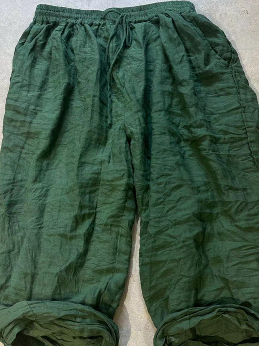 Pantalon sarouel en lin froncé uni vintage pour femme, automne AV1014