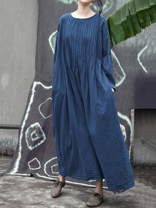 Robe à col rond en coton froncé vintage pour femme, automne AH1006
