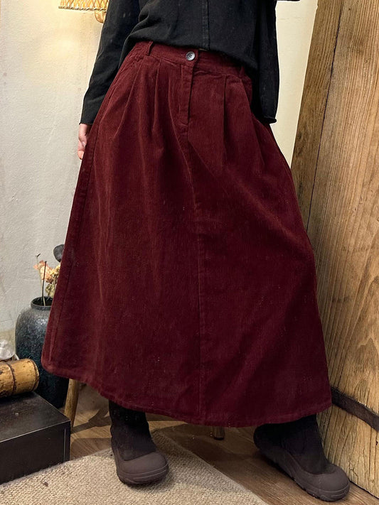 Jupe en velours côtelé uni vintage pour femme, automne BA1041
