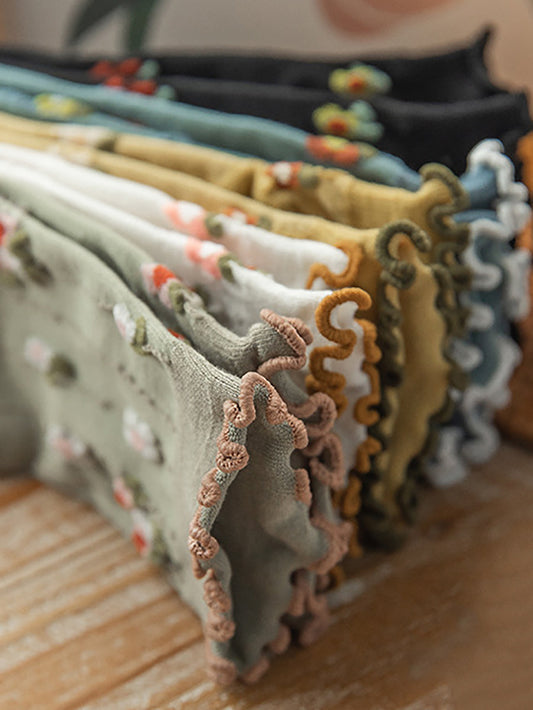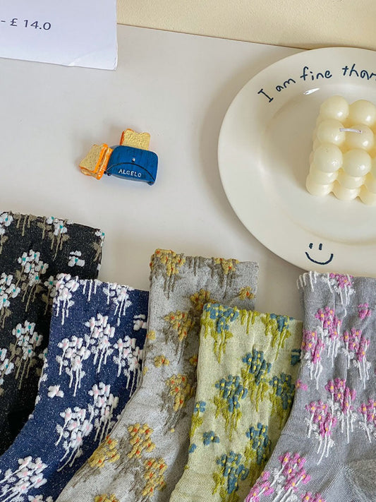 Lot de 5 paires de chaussettes en coton à imprimé floral et jacquard pour femme AH1024