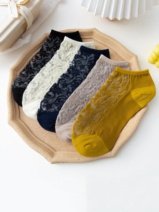 Lot de 5 paires de chaussettes en dentelle jacquard fleuri pour femme AS1010