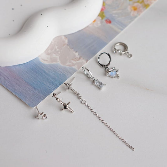 925 Earring Sterling Set Rhinestone Silver Drop of 6: + Huggie Dangle