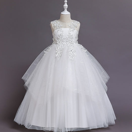 A Girls' Plain Kids Little Line Floral Dress Party