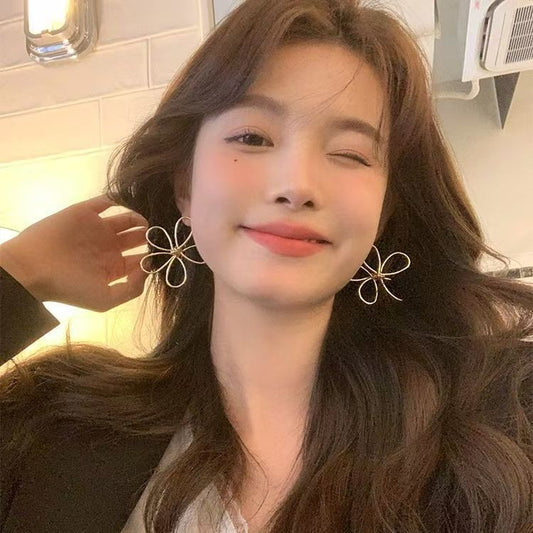 Boucles d'oreilles pendantes en alliage doré, forme poire, motif floral
