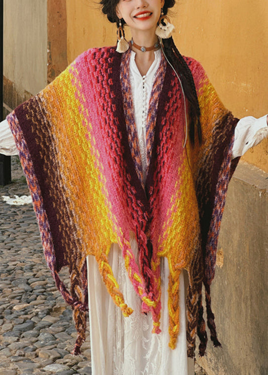 Nouveau châle chaud et douillet à pompons arc-en-ciel bohème 2024 WO037