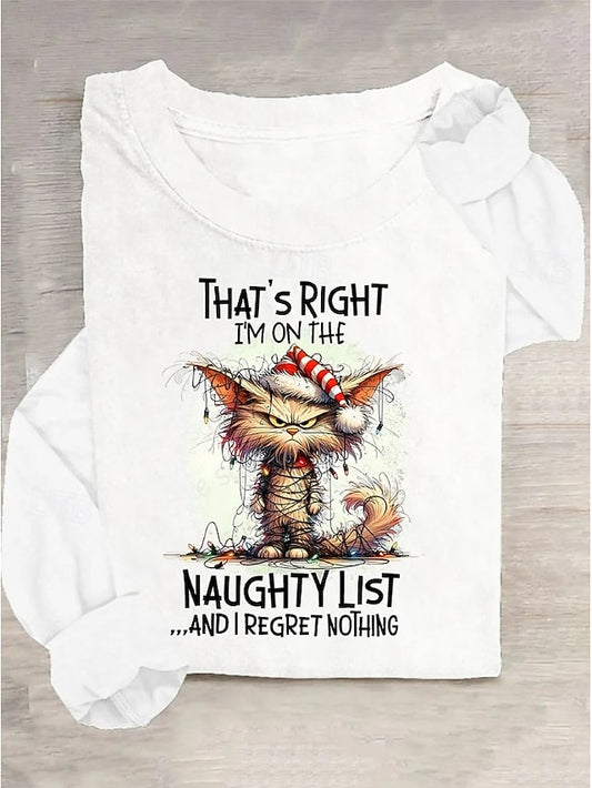Christmas Women's T Shirt Graphic Animal Cat Vintage