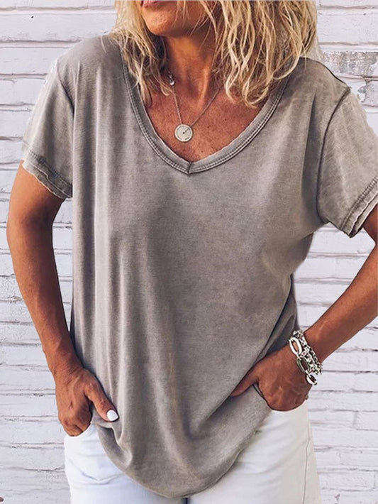 T-shirt décontracté à manches courtes et col en V en coton à panneaux AD1102