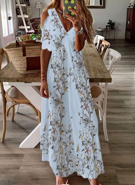 Robe mi-longue décontractée à fleurs et col en V AD1050