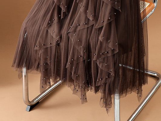 Jupes en tulle à perles et ourlet extra large kaki tendance printemps YU1018
