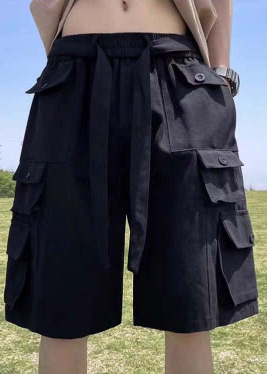 Short kaki à cordon de serrage pour homme, été, coton, poches à boutons, ample