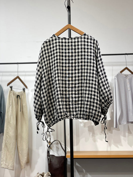 Chemise boutonnée en lin à carreaux vintage pour femme WE1045