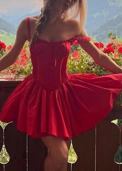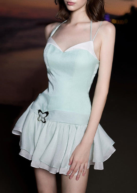 Robe blanche à volants, lacets, couleur unie, col en V, sans manches, YZ045