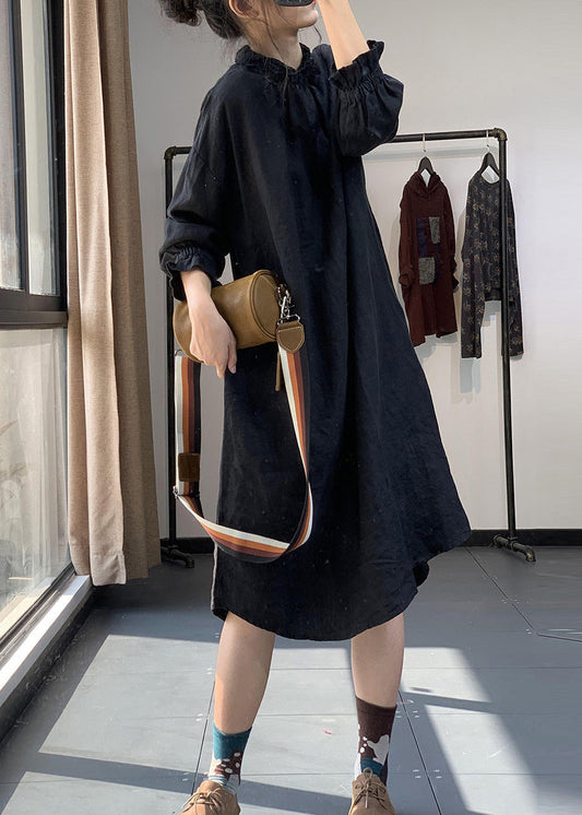 Robe mi-longue noire à col montant et dentelle patchwork pour enfants, collection automne RP039