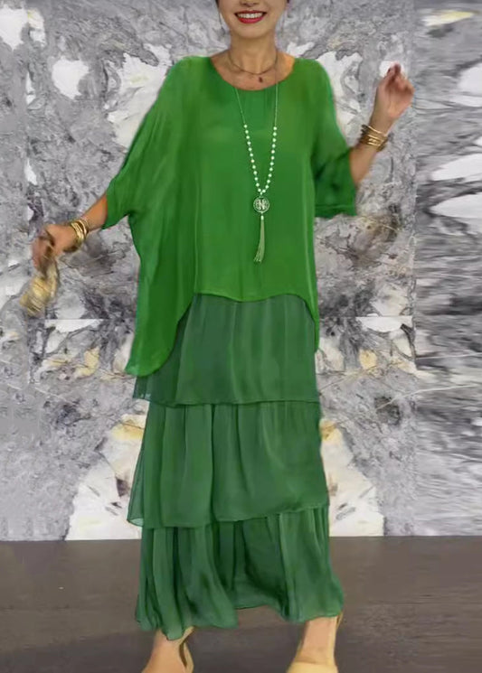 Robe deux pièces à imprimé vert et manches courtes à col rond QA021